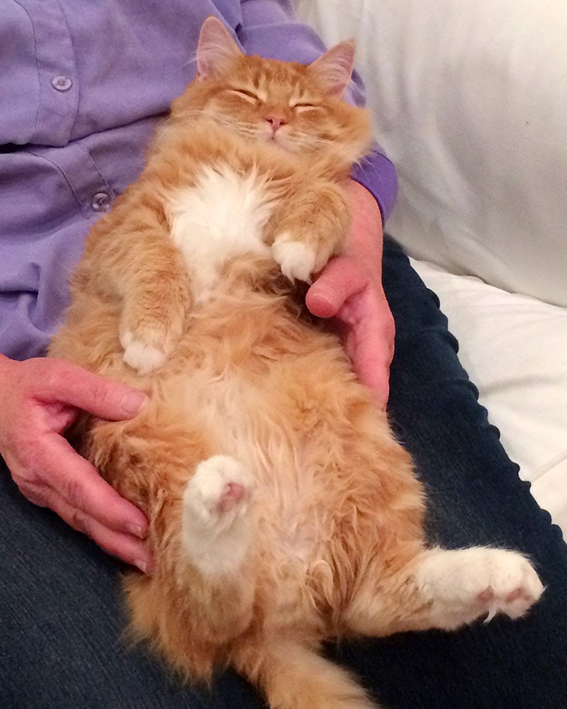 He purrs if you just look at him, loves to snuggle, and gives kitty kisses! Seriously, sweetest cat ever.